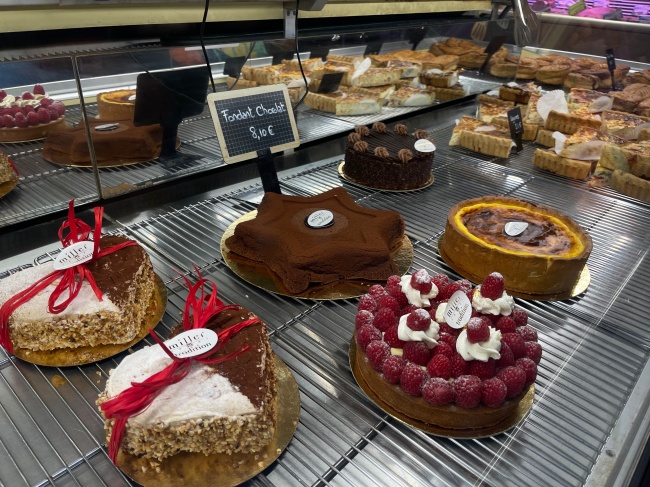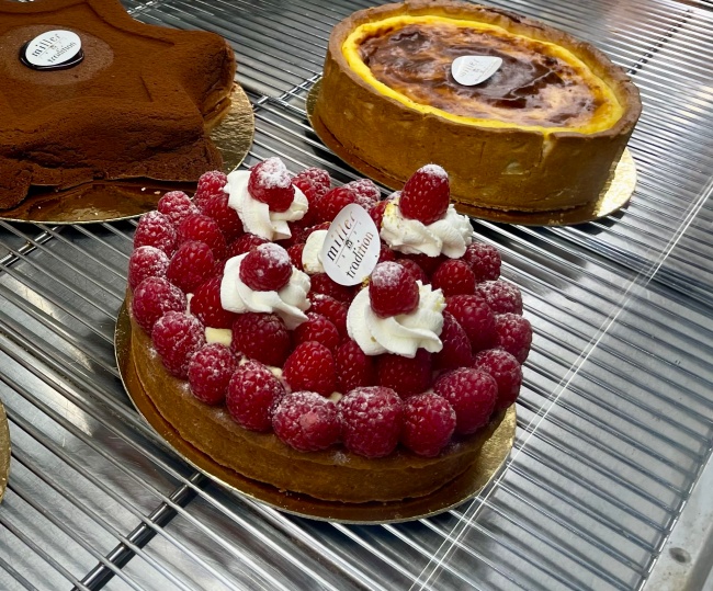 토요일날 아침 출근했더니 시장 입구에 있는 불랑제리에 케이크가 많이 들어와있었다.