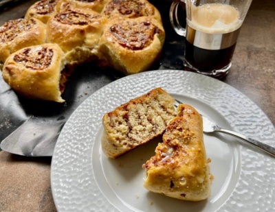 사실 이 시나몬롤을 보면 시어머니랑 같이 종종 만들던 기억이 가장 먼저 떠오른다. 생각보다 어렵지 않았고 대충 만들어도 맛있어서 몇 번 혼자 연습을 하곤 했는데. 하지만 만들고나면 같이 먹어줄 사람은 없어서 아쉬웠던... (그래도 혼자 맛나게 먹었음. 친구들 나눠주기도 하고.)