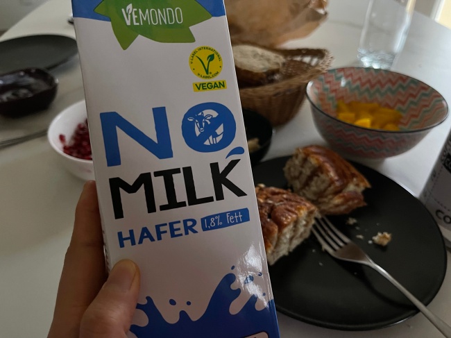 "하하 독일산 식물성우유야. 이름이 정말 기발하지 않아? 패키징은 분명 우윤데 이름으로 떡하니 부정하잖아. 호기심에 저절로 손이 가더라고."