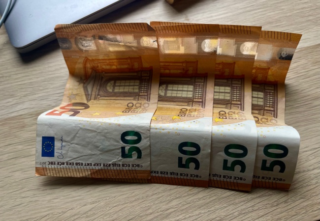 가구팔고 받은 돈. 50유로짜리가 네 장이다.
