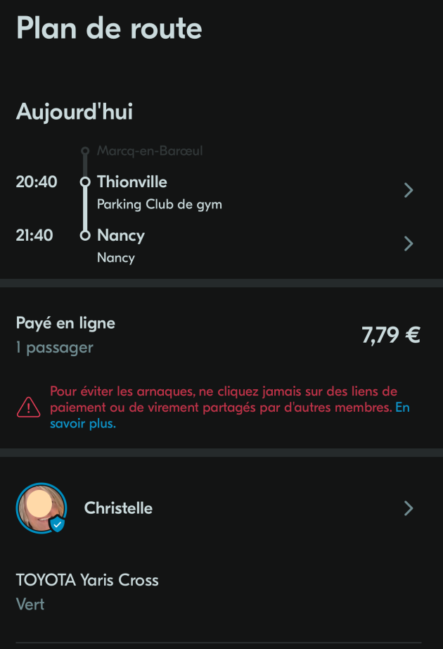 목적지를 검색해보니 티옹빌에서 낭시로 가는 운전자가 딱 한 명 나왔다!
