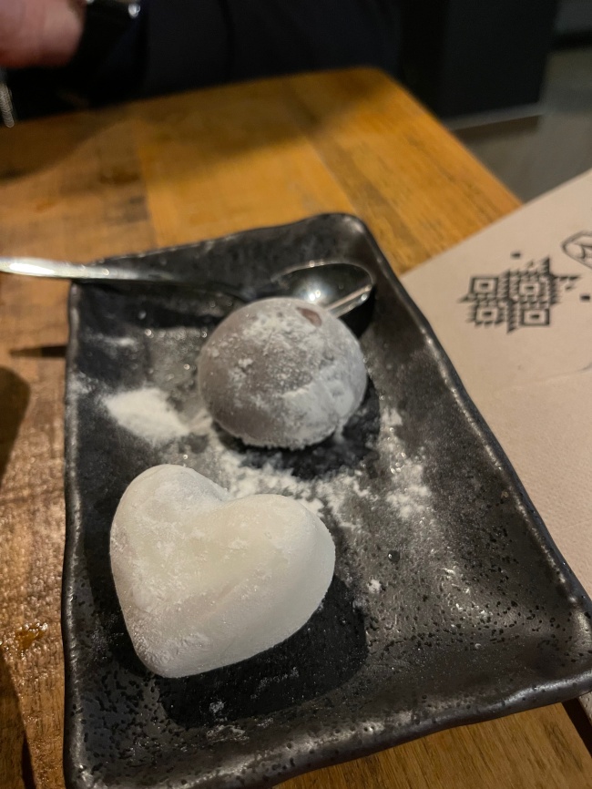 붉은색 블루베리 하트모양 모찌안에는 바닐라 아이스크림이 들어있다. 가성비 대박임.