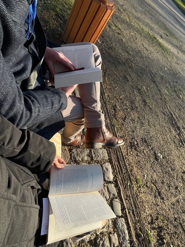 우리는 각자 공원에서 읽을 책을 한 권씩 챙겨들고, 생수도 한 병 챙겨서 집을 나섰다.