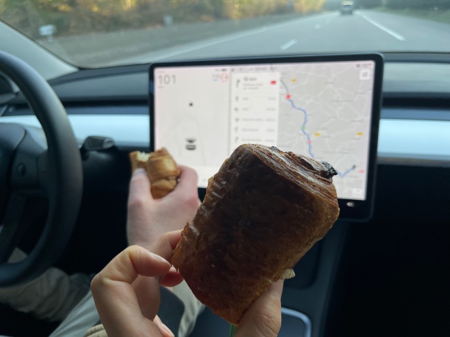 가는길에 버거씨가 미리 준비해 둔 빵오쇼콜라를 먹었다.