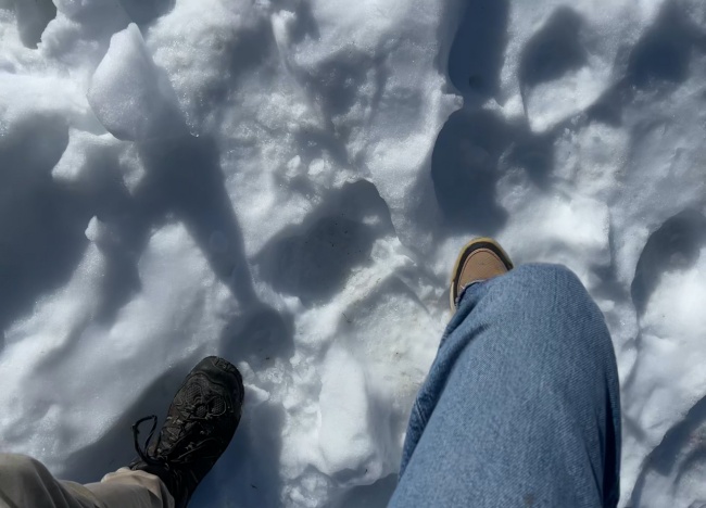 일주일 전에 내린 눈이라는데 겉은 녹아서 딱딱해져있고 군데군데 발이 제법 깊이 빠져서 걷는게 여간 힘든게 아니었다.