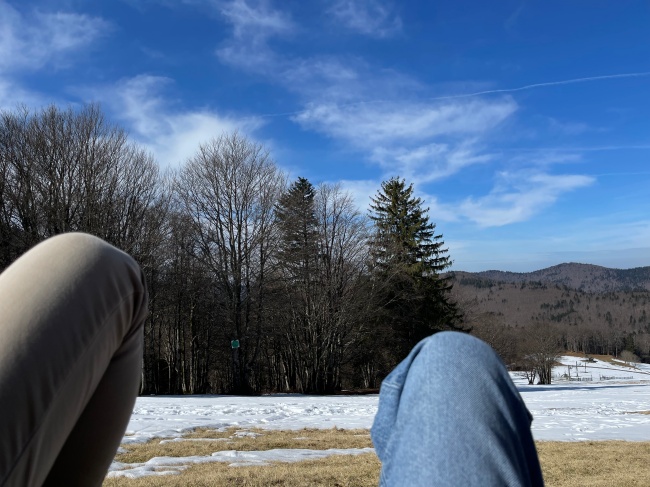 내 말에 버거씨가 옆에 나란히 눕더니 끝내주는 경치에 살짝 신음했다. 파란하늘 흰구름 들판 흰눈 저 멀리 듬성듬성 집들...