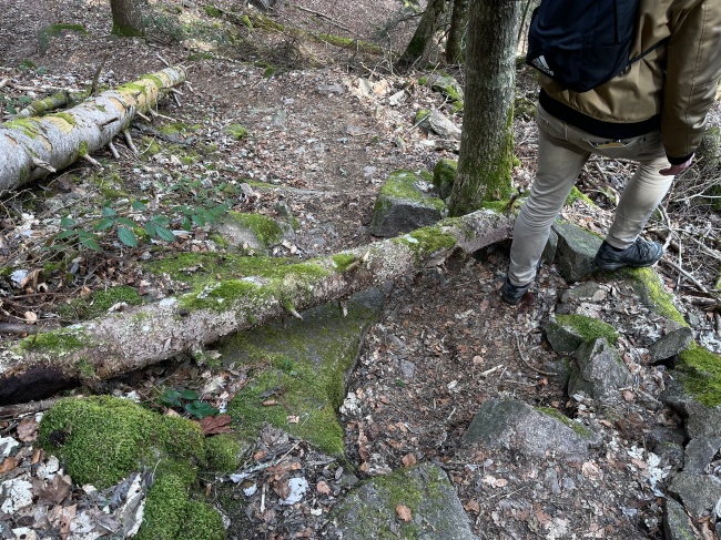 가파른 돌길위에 나무가 가로로 쓰러져있어서 더 조심조심 지나가야 했다. 이렇게보면 평지같지만 실제로는 엄청난 비탈...