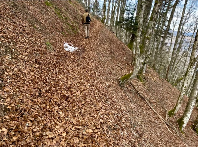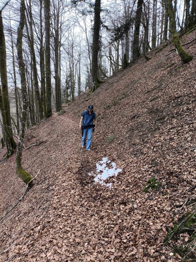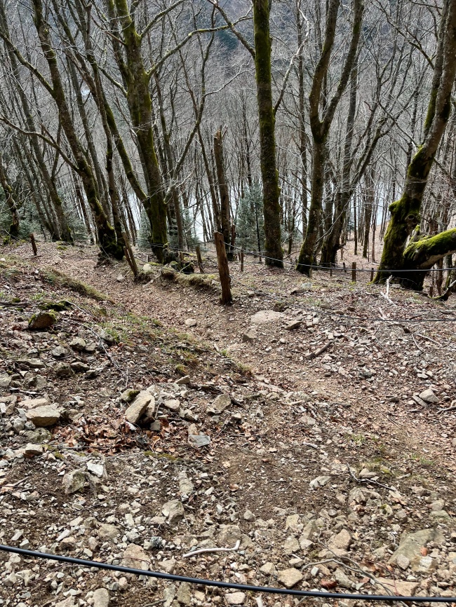 앞서 걷던 버거씨는 나무 반대쪽으로 조심조심 지나가더니 내 손을 잡아주려고 기다렸다. 사진상으론 실감이 안나지만, 실제로 오른쪽 낭떠러지는 매우 가파르고 끝도 없이 이어지는 아찔한 곳이었다.
