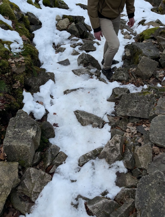 "그래. 이 가파른 길에 그나마 눈이 없는게 어디야... 여기서 눈이 있었다면 어휴 생각만 해도 끔찍하다..."