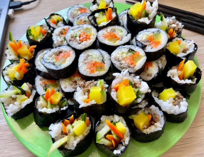 "안토니네 가족 우리집에 초대해서 한국식 바베큐 대접하고 싶은데 김밥도 괜찮겠다 그치?"