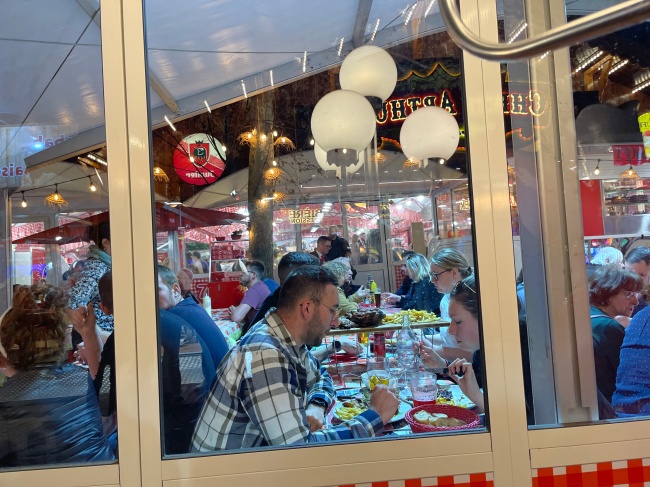 "아, 나 이거 들어봤어. 검은곰 레스토랑! 야시장에서 이건 꼭 먹어보라고 하더라. 유명한 집이래."