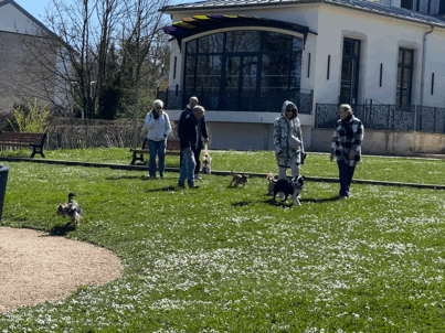 평화를 음미하던 중 저쪽에서 시끌벅적한 한 무리가 공원으로 들어오고 있었다. 그 모습을 보며 우리는 동시에 웃음을 육성으로 터트렸다.