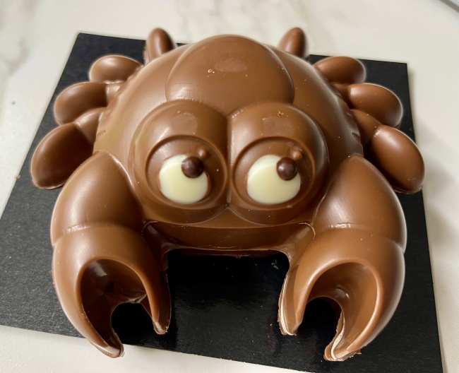 룩셈부르크 어느 이름난 쇼콜라트리에서 샀다고 했는데 꽃게의 두눈이 너무 예뻐서 깨트리기 좀 미안했다. 그래도... 칼등으로 꽝...