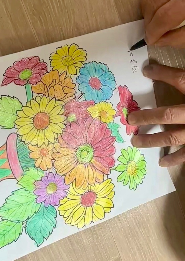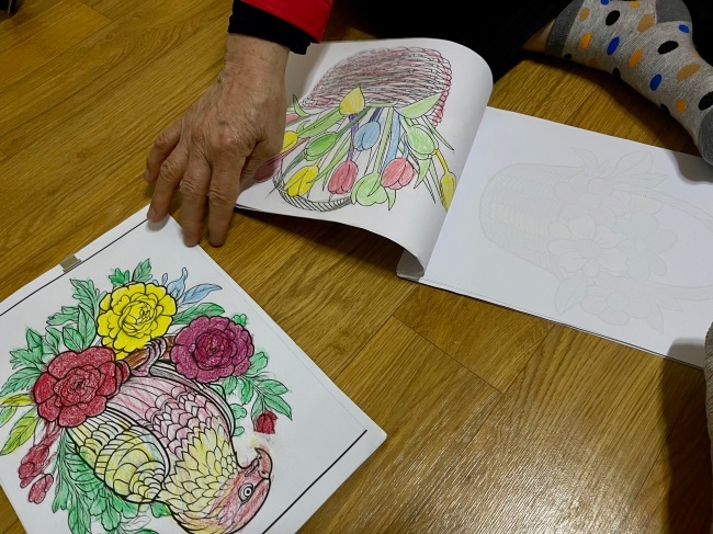 "응 나도 내가 이런거 잘 할 줄 몰랐그등? 복지사가 올 때마다 놀래잖아. 다른 노인들은 못그린대. 내만큼 그리는 이가 없다고 맨날 놀랜다?"
