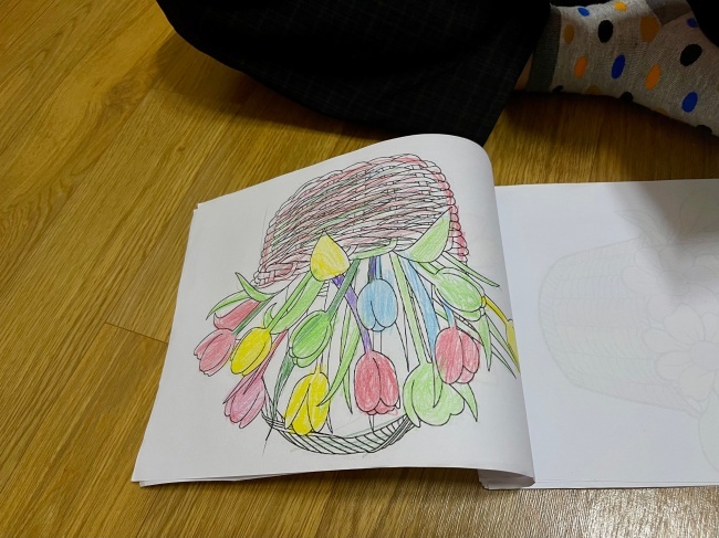 "여기는 색깔이 좀 부족하네... 나 이거 다시 들고가서 그려와야겠다..."