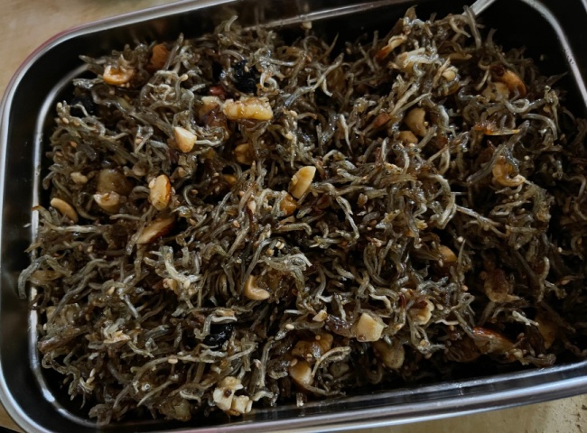 언니가 잔멸치를 볶아다 줬고 엄마는 무말랭이를 해주셨다. 울 엄마 무말랭이는 어릴적부터 진짜 맛났다. 특이하게 마른 오징어를 넣으시는데 다른집도 다 이런줄 알았다.