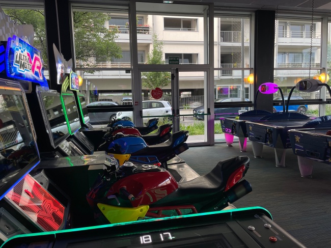 키네폴리스까지 갔다가 버거씨는 오락기가 잔뜩 보이는 가게에 시선을 빼았겼다. 안에 한번만 들어가 보면 안되냔다.