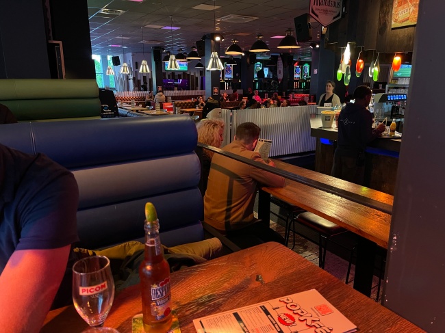 게임 3가지를 하고 난 후 우리는 테이블에 앉아서 맥주를 시켰다.