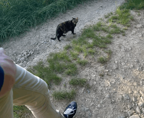 우리가 발걸음을 제촉했더니 이 멀리까지 여전히 따라오고 있던 고양이가 뒤에서 야옹야옹거리면서 자꾸 말을 걸었다. 아마도 좀 천천히 가란 소리 같았다.