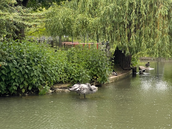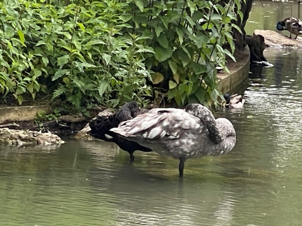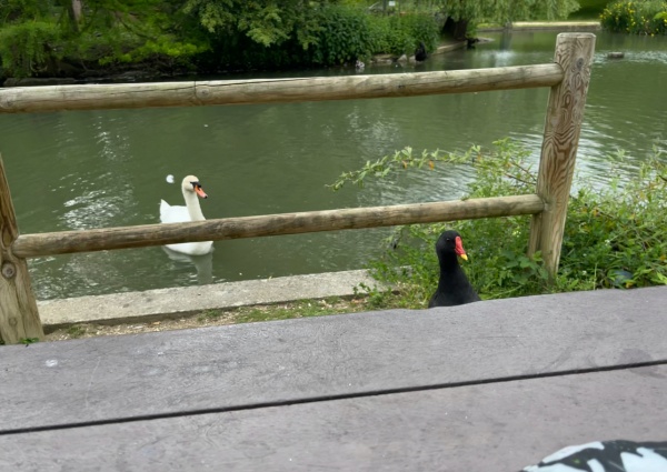 백조랑 흑조가 차례로 다가와서 우리에게 (엄밀히는 우리가 먹는 음식에) 관심을 보였다.