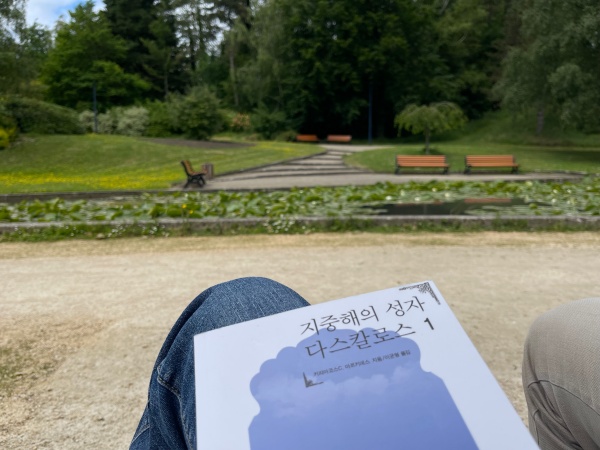 이곳까지 걸어오느라 (트램도 탔음) 애먹었으니 적당한 벤치에 앉아 쉬면서 자연스럽게 각자 책을 꺼내들었다.