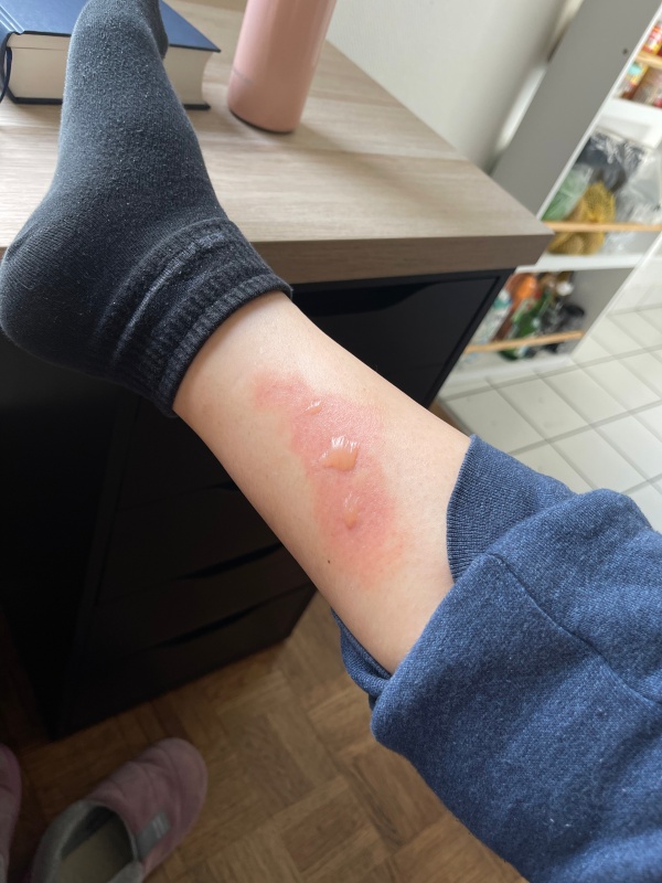 찬물에 잠깐 담궜다가 괜찮아지겠거니 하고 그냥 잤다. 그랬더니 다음날부터 수포가 올라오네.. ;;