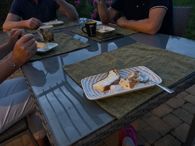 디저트로 치즈케이크에 아이스크림을 먹었다.