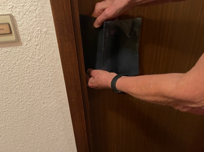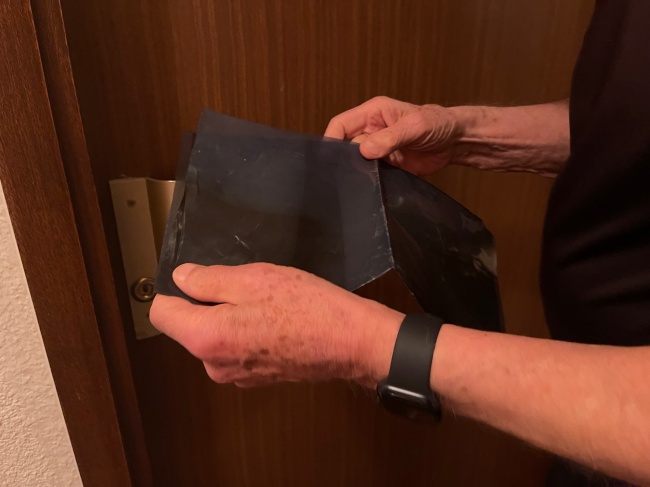 "이건 우리 아들이 예전에 다리가 아파서 찍은 엑스레이 필름인데 이걸로 요렇게 하면 문을 열 수가 있지요..."