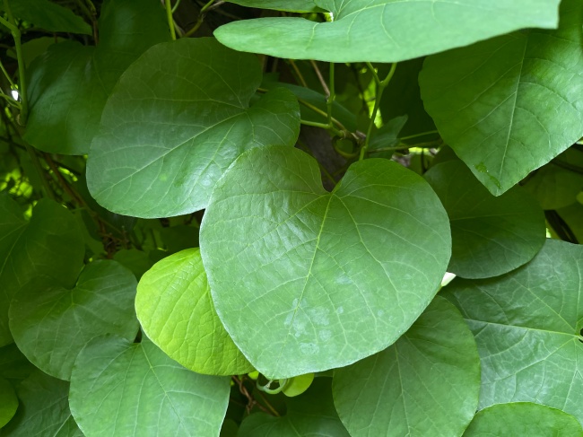 공원에서 발견한 하트모양의 넓은 이파리들.