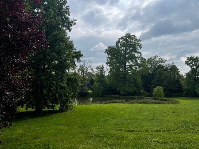 정원 한쪽 구석에 연못이 있는데 오리들이 꽥꽥거리는 소리가 들렸다.