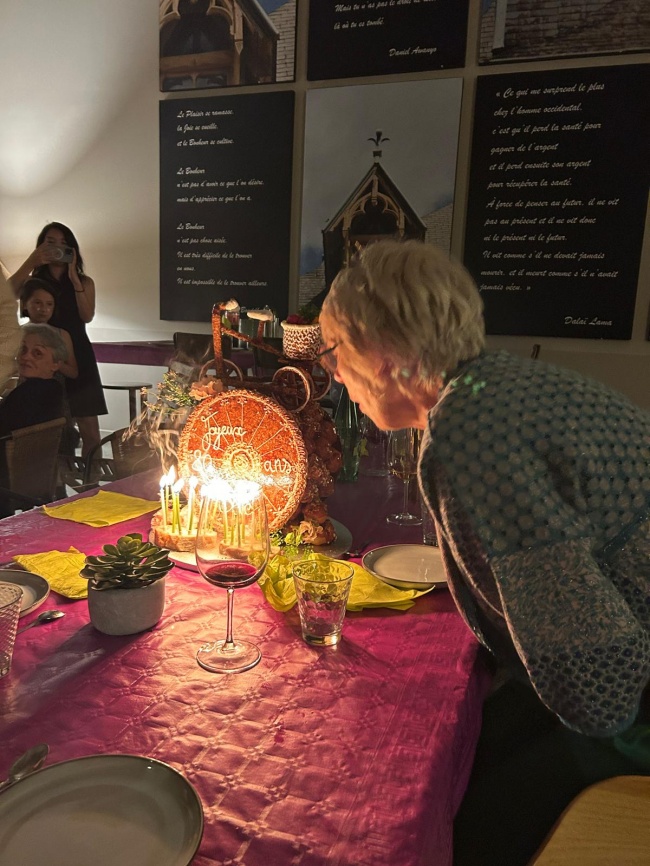 다같이 생일 축하송을 합창했고 그레고리는 천천히 고모님이 계시는 곳까지 조심조심 케이크를 배달했다.