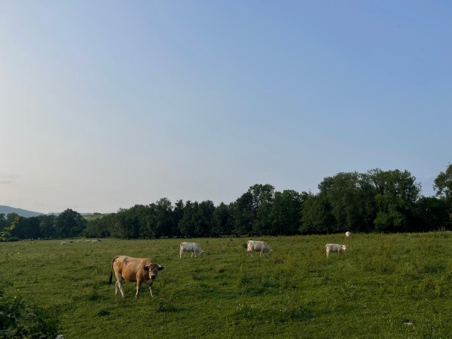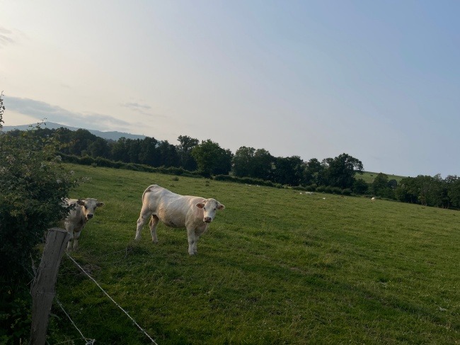 샤또 근처에 돌아왔을때 소들이 우리를 빤히 쳐다보았다.