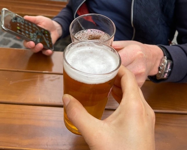 와인은 충분히 마셨으니까 이번에는 시원하게 맥주잔을 부딪혔다.
