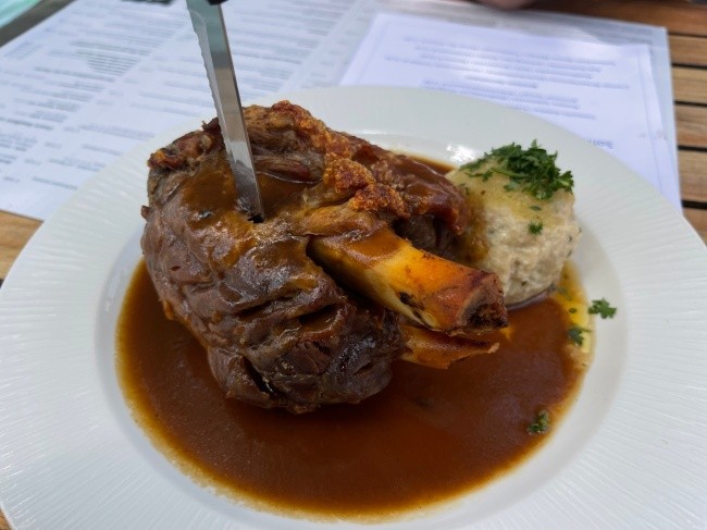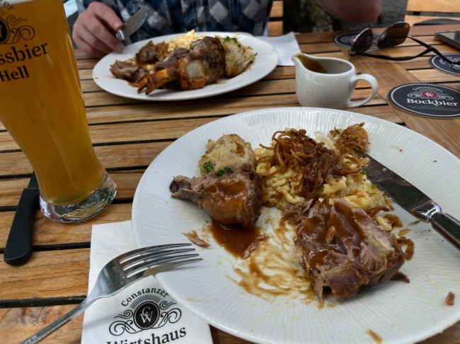 나는 독일에 왔으니 슈바인학센을 먹겠다고 했고 버거씨는 치즈 슈페츨레를 골랐다. 평소처럼 우리는 반반씩 나눠먹었다.