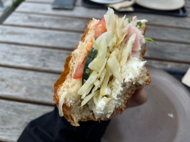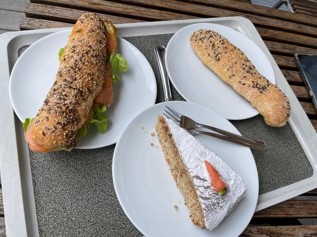 앉아서 쉴 겸 간단히 요기도 할겸 연어 샌드위치랑 당근 케이크를 사 먹었다. 올때 준비해온 음료랑 간식이 두둑해서 크게 배가 고프지는 않았다.