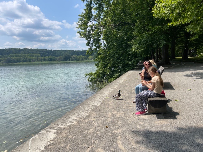 우리도 벤치에 앉아서 간식을 꺼냈더니 오리 한마리가 불쑥 다가오더니 대 놓고 구걸을 했다ㅋㅋㅋ