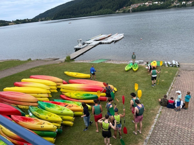 카약을 타러나온 젊은이들.