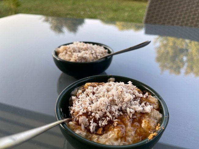 타피오카 펄에 코코넛밀크랑 코코넛설탕 그리고 코코넛 가루만 기억나네. 아 그리고 저기에 찹쌀밥도 섞여있음.