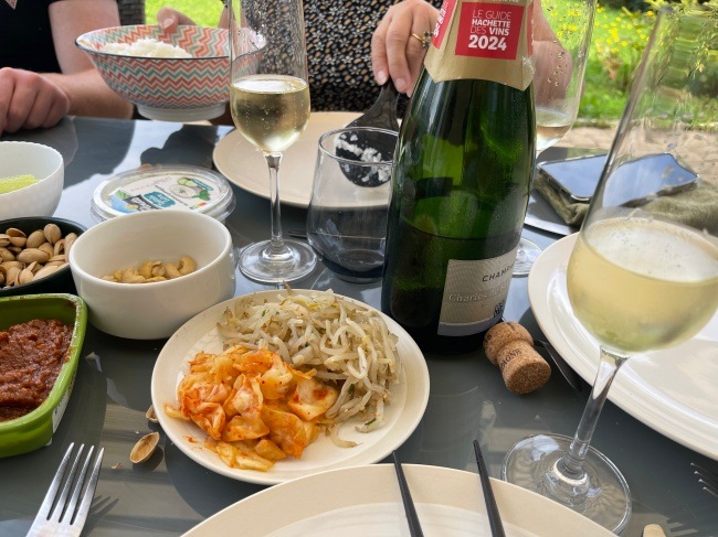 그 반찬과 안어울리게 샴페인을 먼저 마셨다.