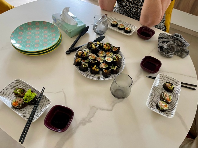 처음에는 왜이렇게 많이 만드냐며 버거씨랑 어머니께서 그만 만들어도 되겠다며 나를 말렸는데 역시나 김밥은 많으면 많을수록 좋은 것이었다. 두 사람다 어찌나 잘 먹는지. 열 줄 말았으면 열 줄 다 먹었을 것 같다ㅋ
