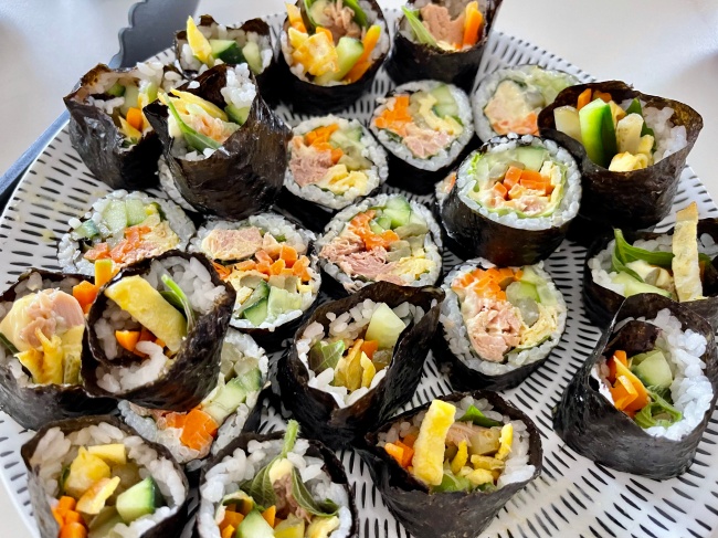 어머니께서는 연어를 안좋아하셔서 그냥 캔 참치로 김밥을 하기로 했다.