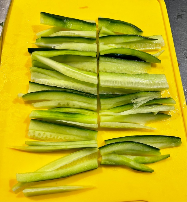 버거씨가 자기도 할 일을 달라길래 오이를 최대한 가늘게 채 썰어보라고 막중한 임무를 맡겨놨더니....