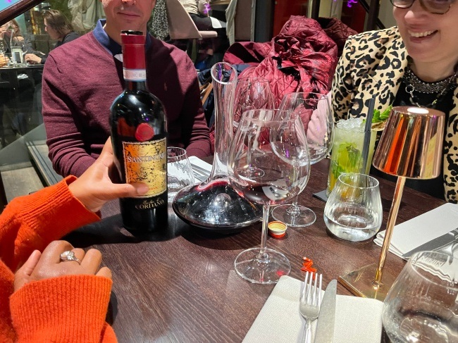 각자 칵테일이나 샴페인을 주문하는 사람들도 있었지만 가까이 모여앉은 우리 6명은 레드와인 한 병을 주문해서 나눠 마시기로 했다. 서로 와인 취향이 달라서 고르는데 좀 애를 먹었지만ㅎㅎ 나와 버거씨가 양보해서 좀 쎈(?)걸로 합의를 했다.