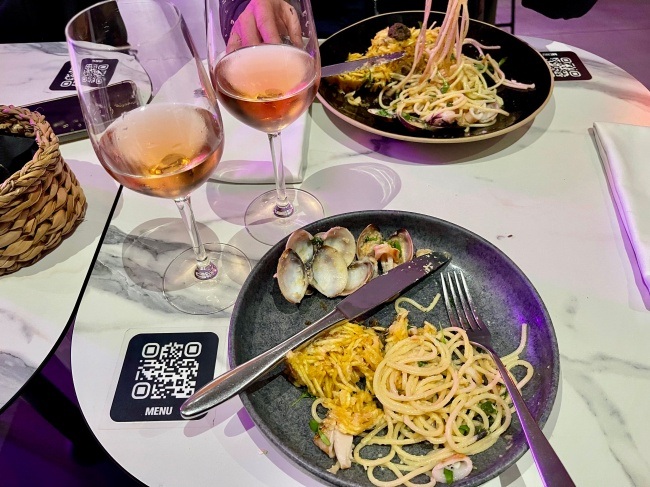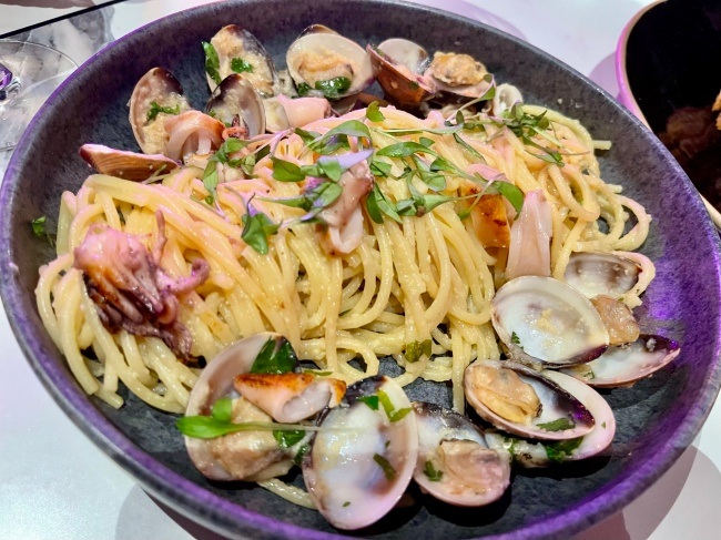 오징어가 들어간 봉골레 파스타와 생선요리를 주문했다.