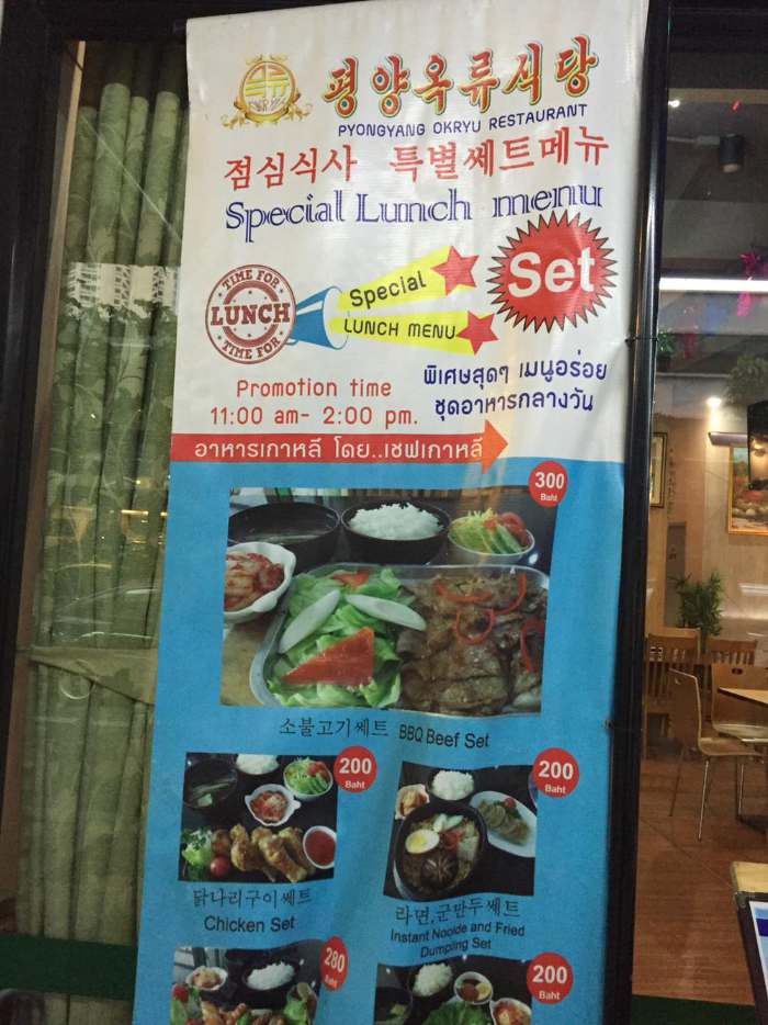 장사가 안되는 정도가 아니라 아예 텅 비어있었다. 여기말고 방콕 다른지점에 있던 북한식당은 장사가 안돼서 이미 문을 닫았다고 들은것 같다. 한국인이든 외국인이든 북핵에 조금이라도 일조하고 싶어하지 않아서 손님들 발길이 뚝 끊어졌나보다. 아무튼 여기도 곧 문을 닫을것 같은 분위기-
