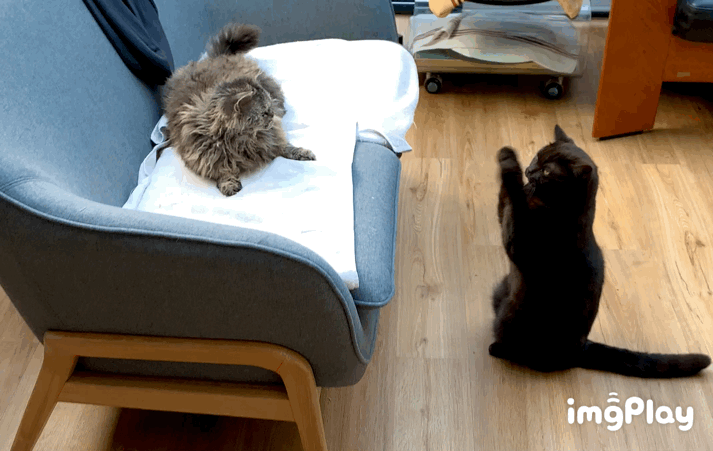 브리티쉬 숏헤어 특유의 묵직함이 있는 아이지만 역시나 고양이라서 엉뚱한 행동을 한다.