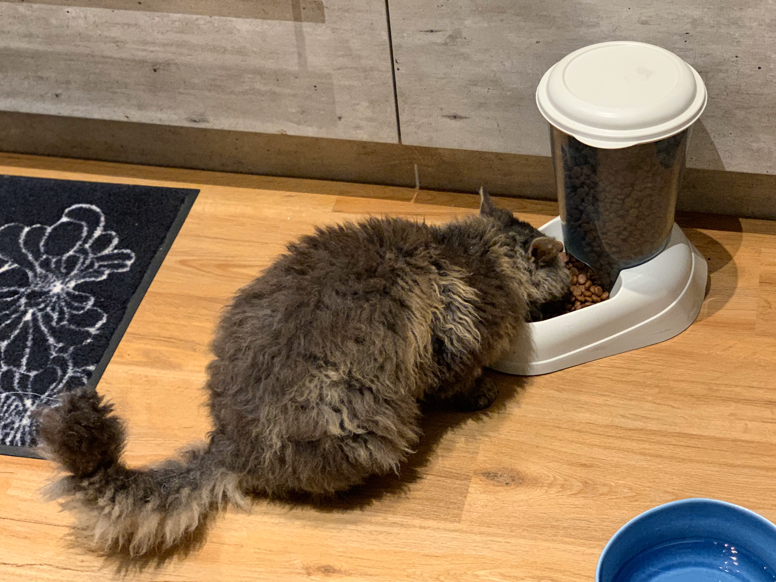 아무튼 문을 열어줬더니 바로 사료먹으러 달려갔다.
