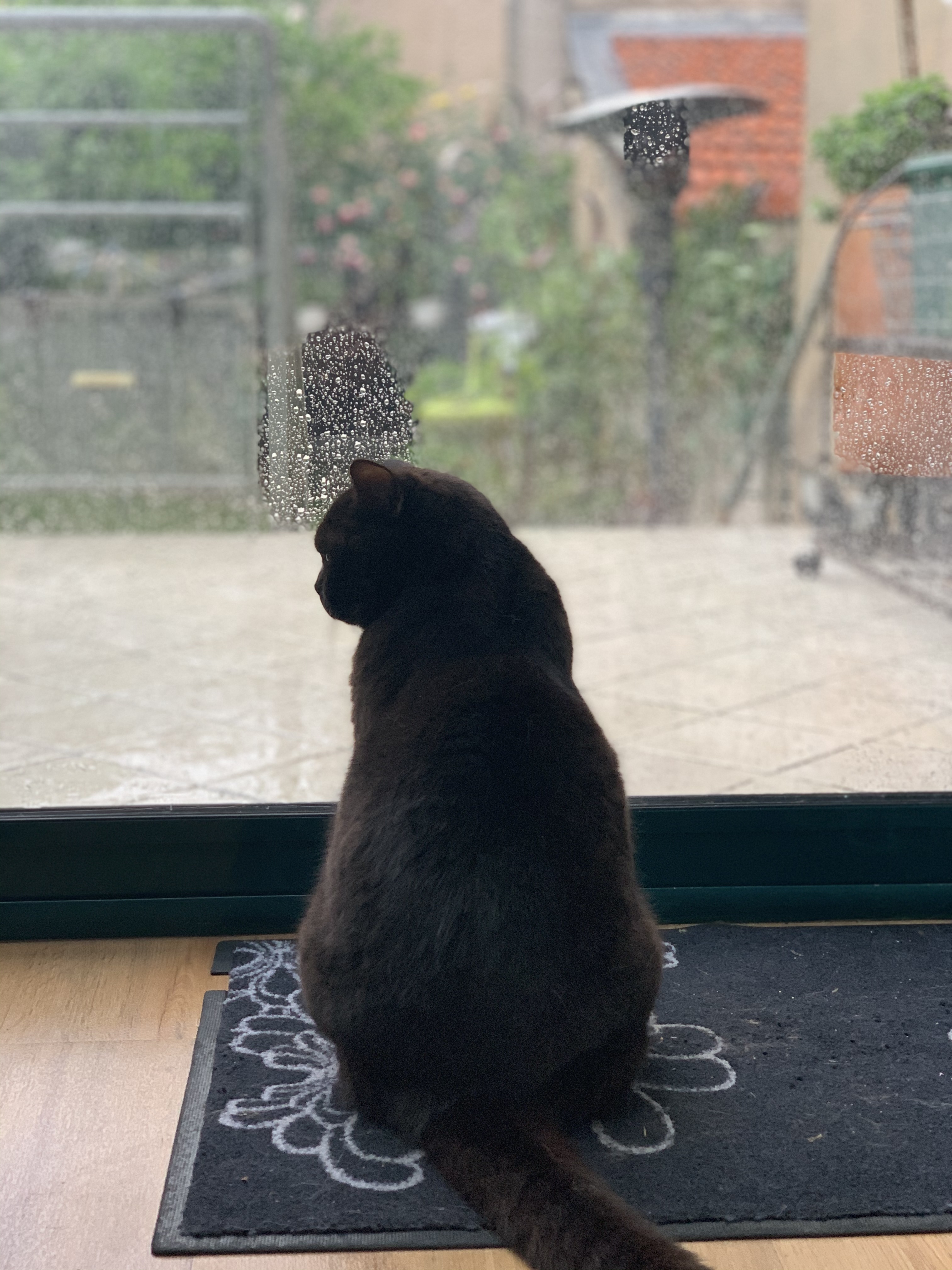 밖에 비바람이 몰아치는대도 습관적으로 밖에 나가려고 문열어 달라고 보챈다.