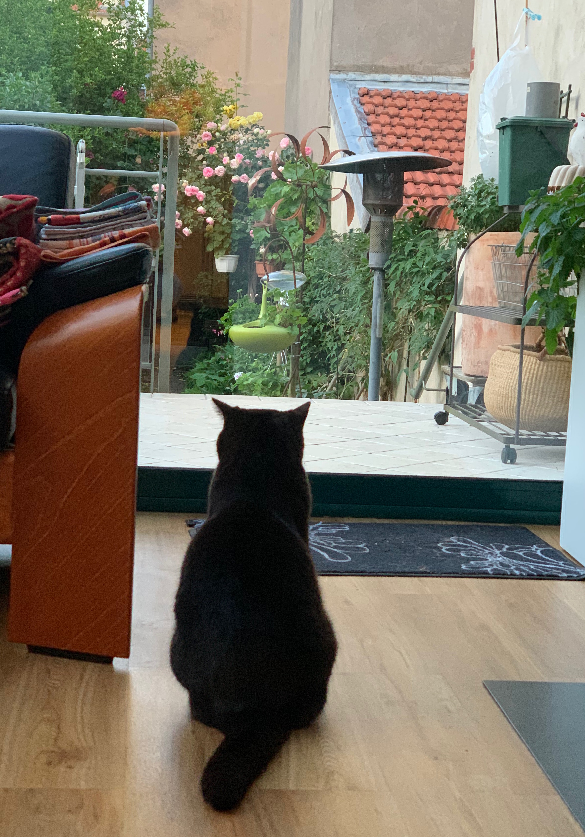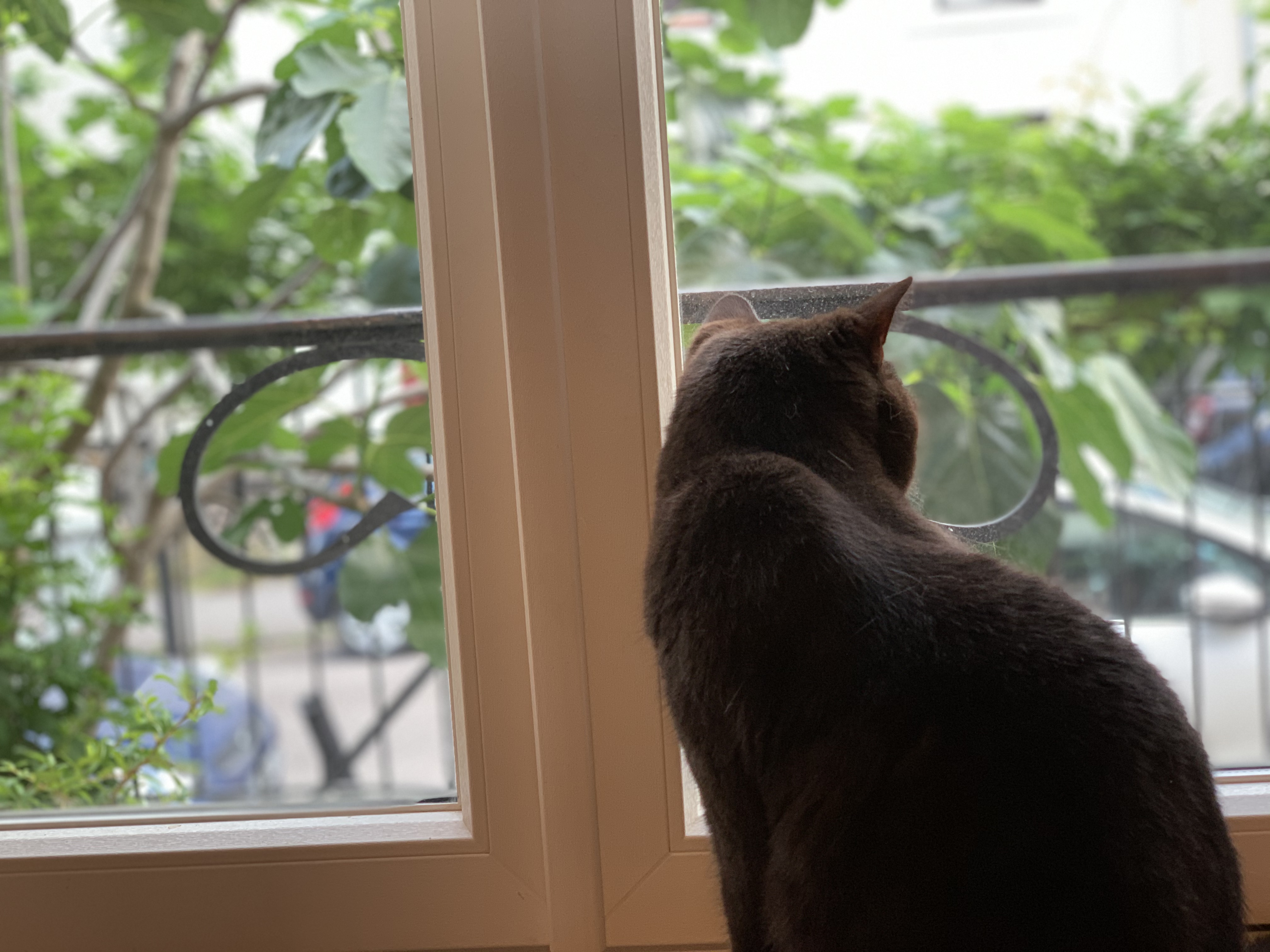 저녁 8시정도에는 어김없이 테라스로 통하는 셔터를 닫기 때문에 고양이들이 못나가도록 다시는 문을 열어주지 않는다.