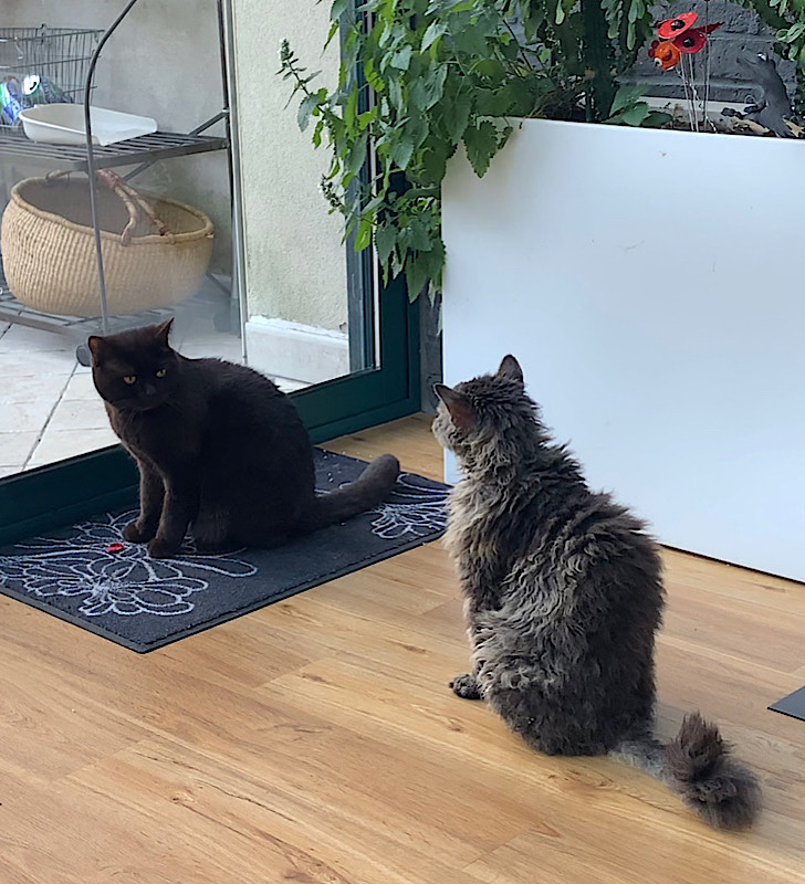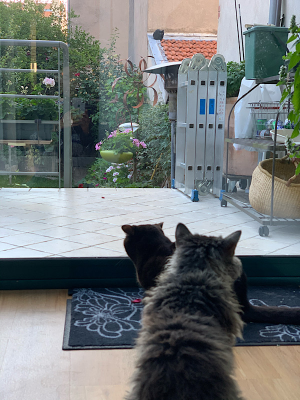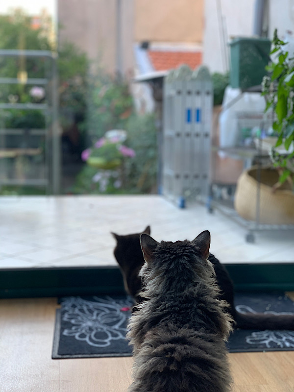 자서방이 출근전에 테라스 문을 열어 준 덕에 고양이 두마리 모두 외출한 상태였다. 그렇게 아침마다 밖에서 볼일도 보고 옆집 정원에서 놀기도 하고 그런다.